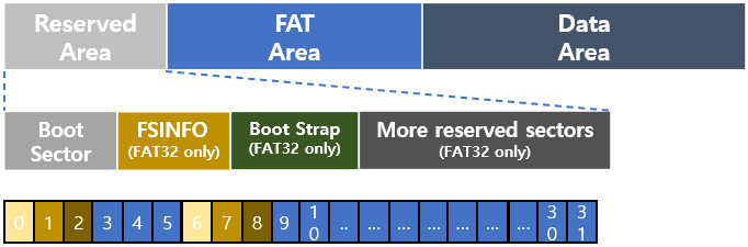 FAT12, FAT16은 예약된 영역에서 Boot Sector가 1섹터를 차지한다.
