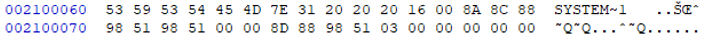 파일 이름을 보면 'SYSTEM~1' 이라고 적혀있습니다. 할당 되어있는 8-bit를 다 사용하고 그 기준을 넘겼을 때 '~1' 라는 것이 추가가 됩니다. 우선 LFN의 엔트리를 볼까요.