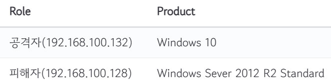 본 글에서는 피해 서버를 선택할 때, 침해사고 비율이 높은 Windows Server 2012 R2를 선택하였다. 공격을 진행할 서버로는 Windows 10을 사용하고자 했다.